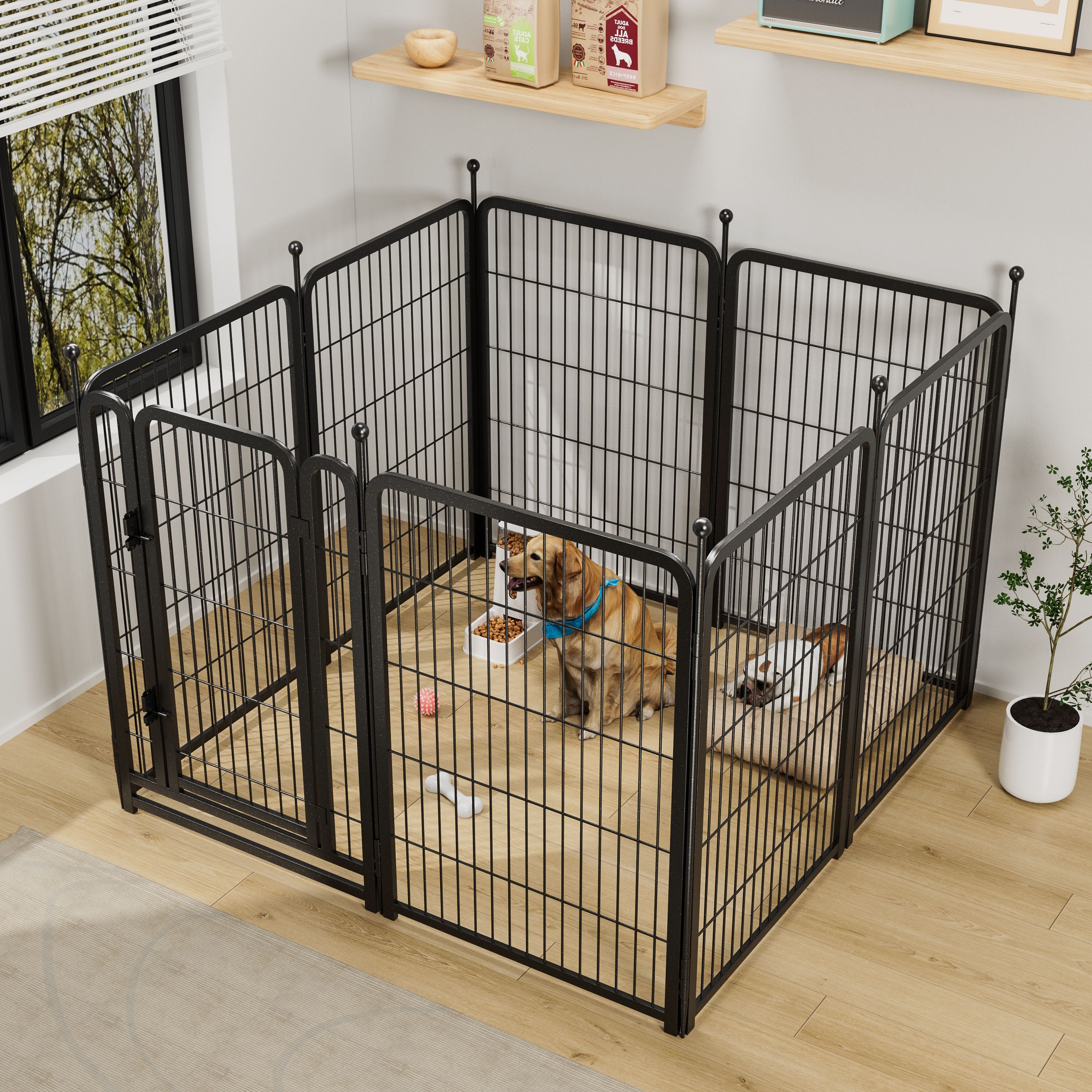 Anti-Rust & Stable: The dog fences for the yard take in new technology that crafted with silver powder-coated on black heavy-duty thickened iron, come to be highly rust & corrosion resistant, waterproof and anti UV. Enable to increase longevity and durability whatever indoor or outdoor. Coupled with heavy-duty thickened metal pipes add to the stability of the dog pen.