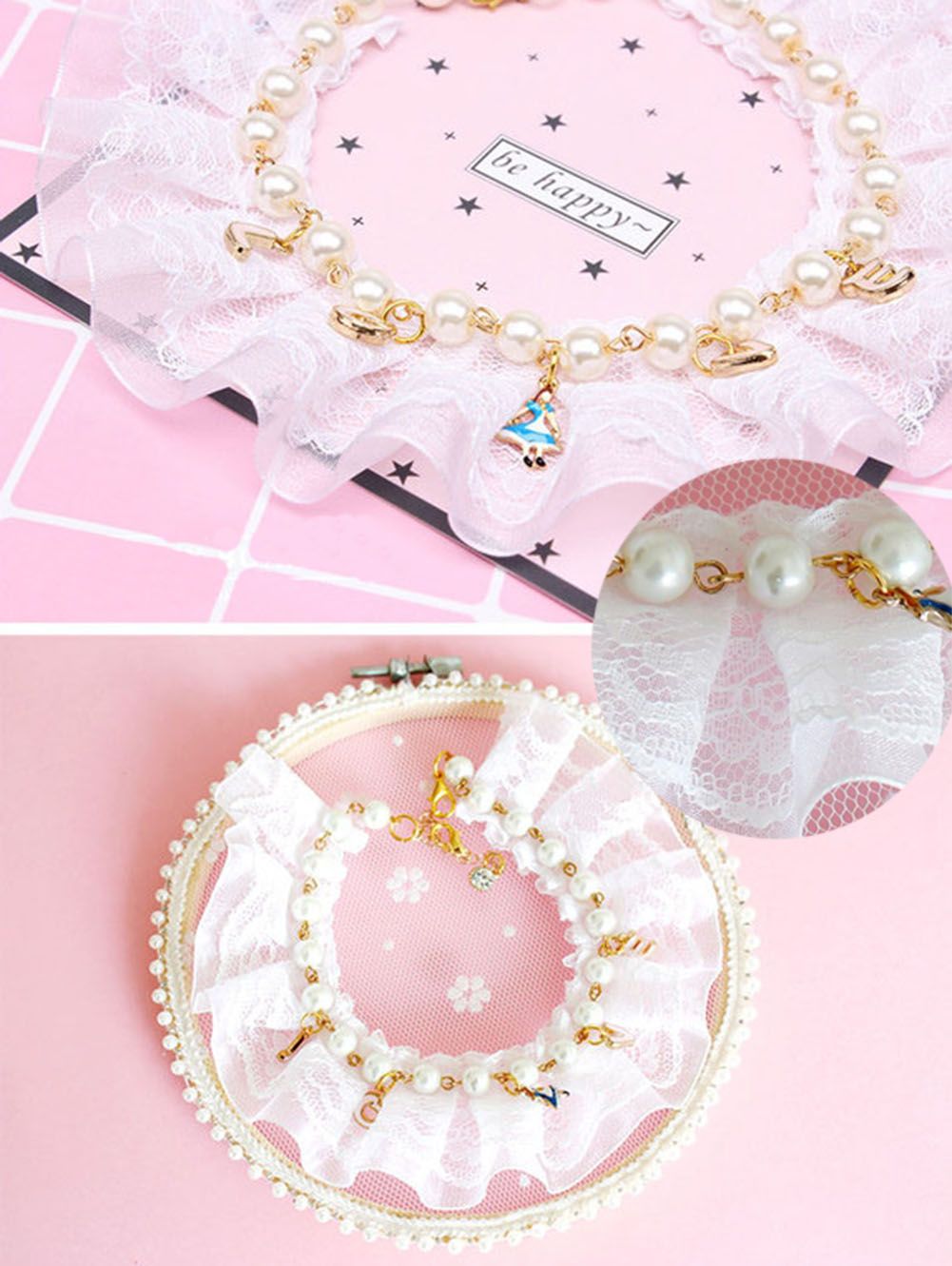 Luxurious Pearls Pet Collar With Lace Decorative Necklace for Medium Cat Dog 10-12 inches Luxurious Pearls Pet Collar With Lace Decorative Necklace for Medium Cat Dog 10-12 inches