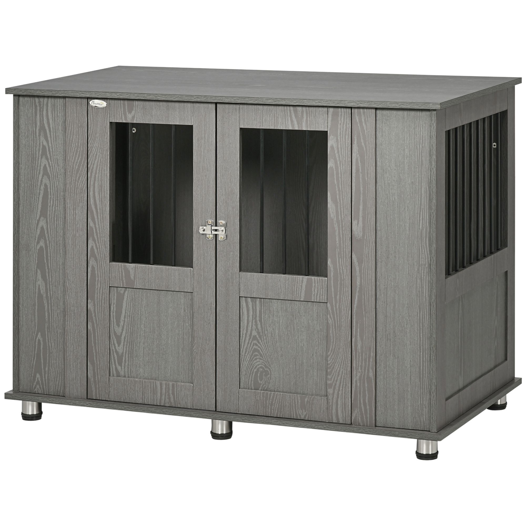 PawHut Extra Large Wooden Dog Crate Furniture End Table with Lockable Magnetic Doors Indoor Pet Kennel Gray