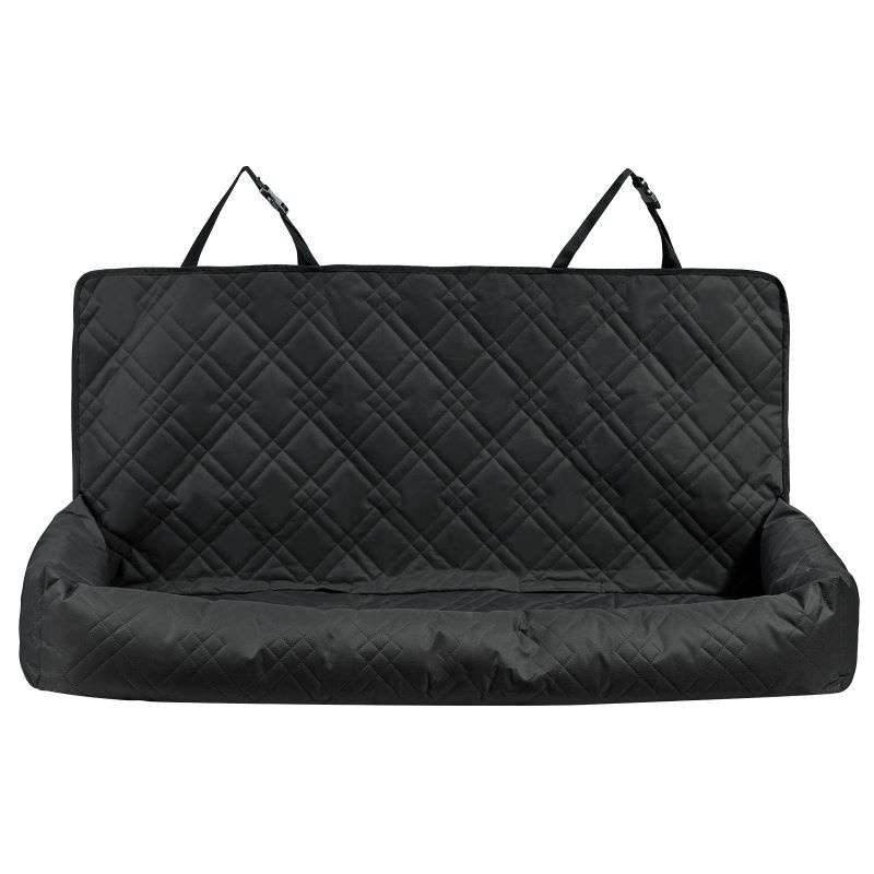 Features adjustable seat belts and a pet safety strap for secure attachment.